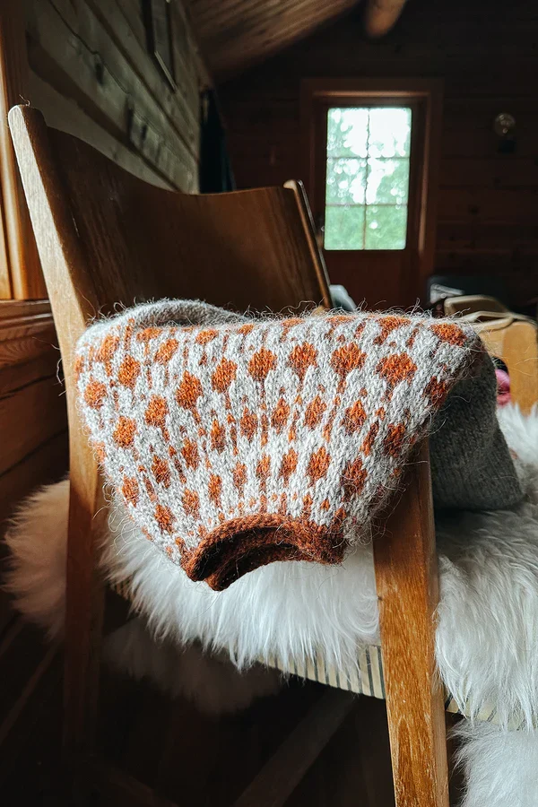 Denne genseren er dedikert til alle timene brukt på å lete etter naturens egne vitaminer i Finnmark. Genseren strikkes nedenfra og opp med rett bol.